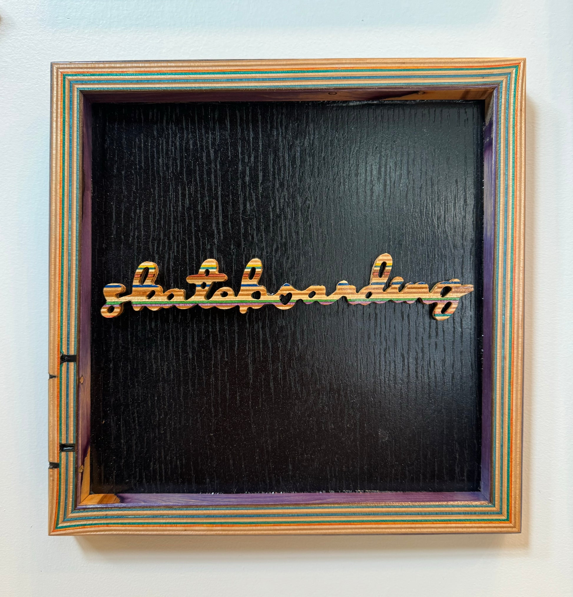 ~12” x 12” wall art handmade in the USA from recycled skateboards. hand signed and individually numbered. The O of this piece features a heart to represent my love of skateboarding✨