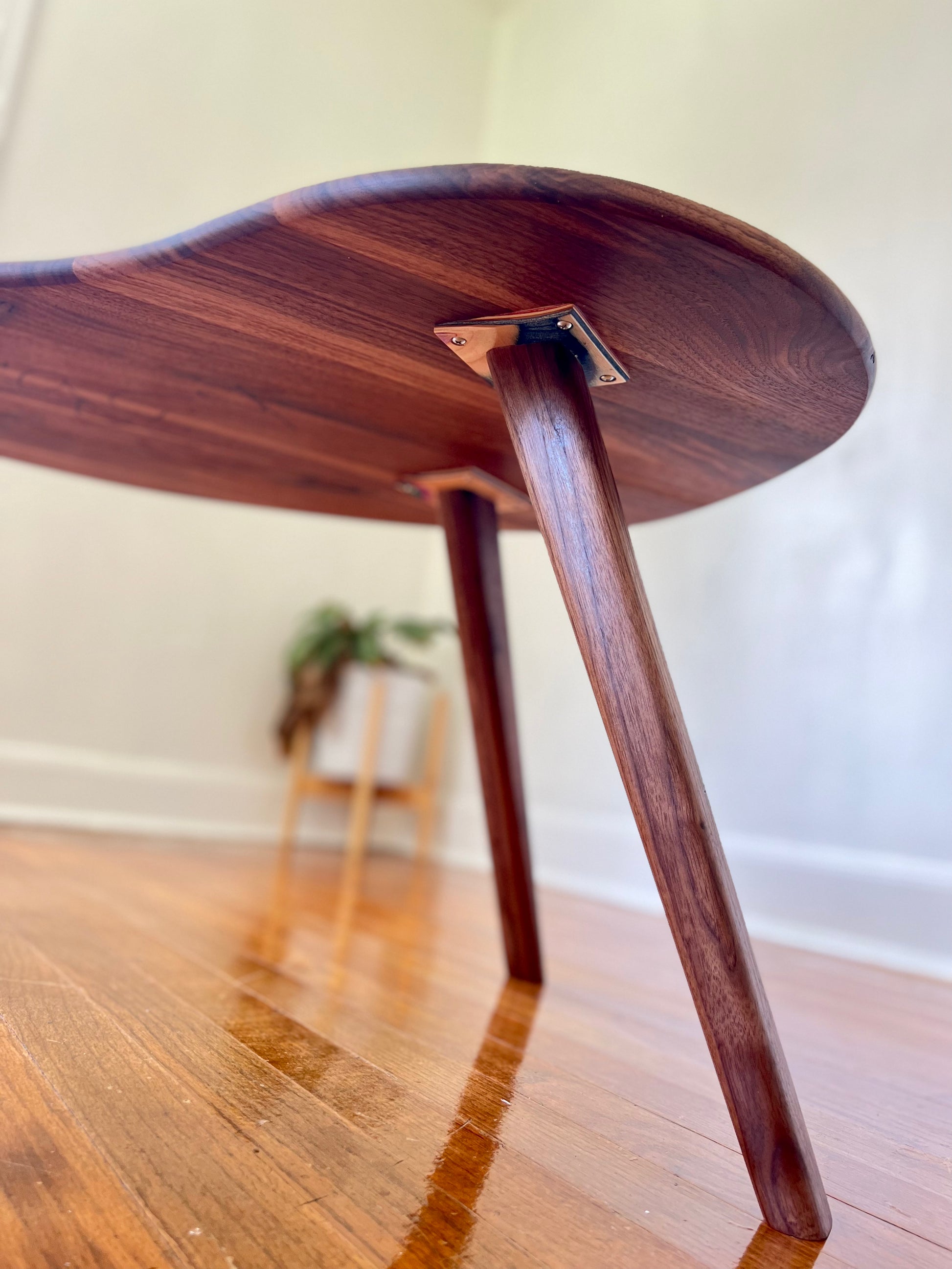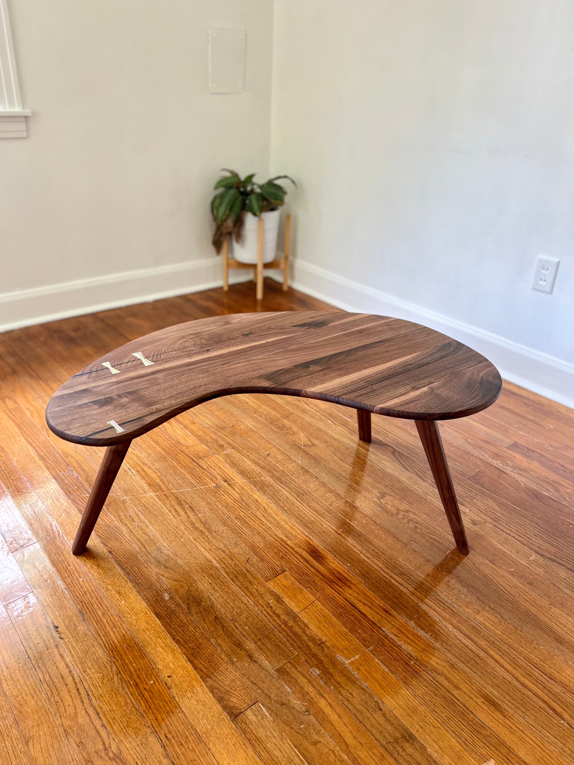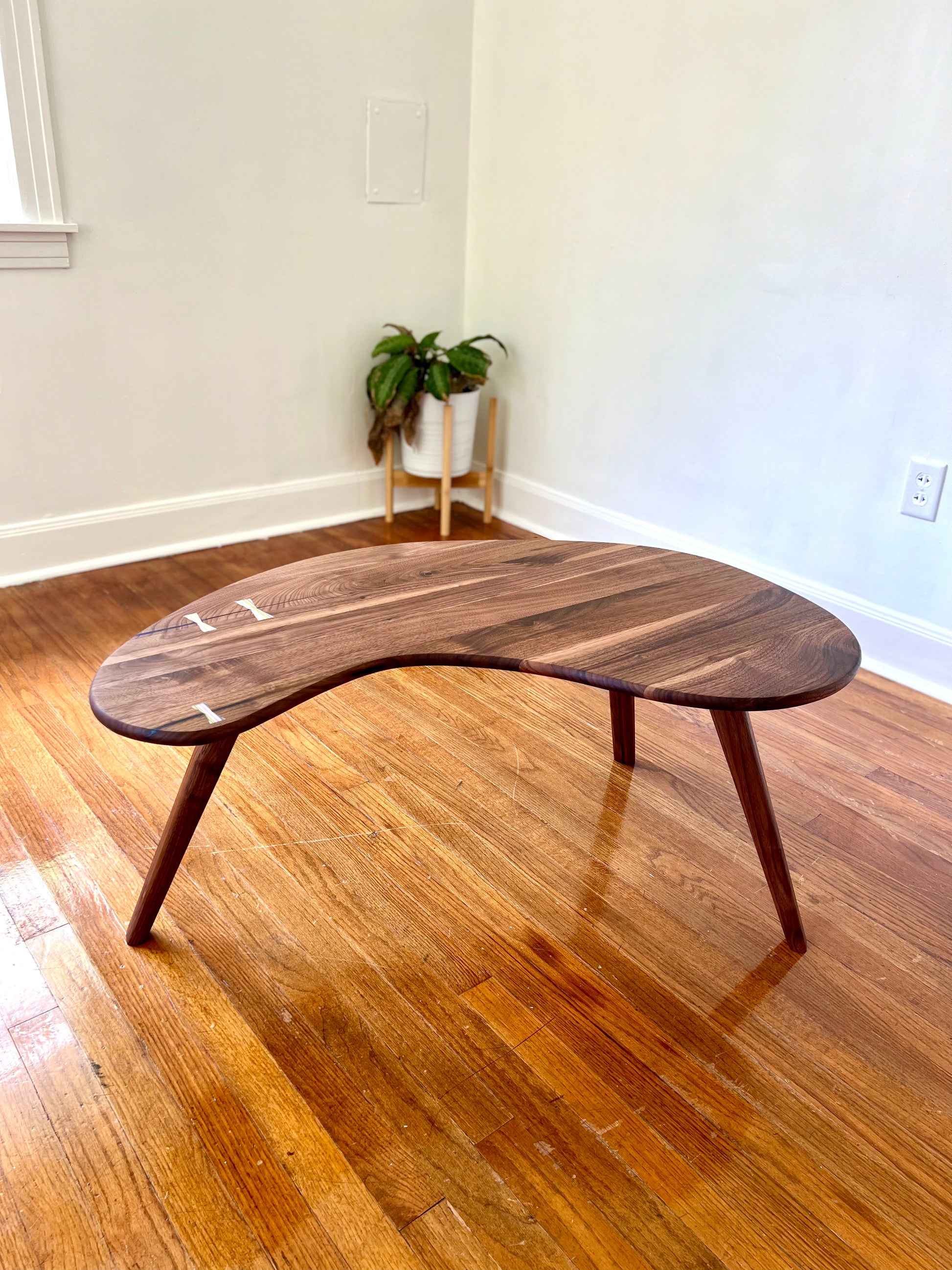 Made from rustic walnut and recycled skateboards, this piece offers soft edges with a warm feel. Perfect to compliment any room with natural lighting. ~33” x 18” x 18”