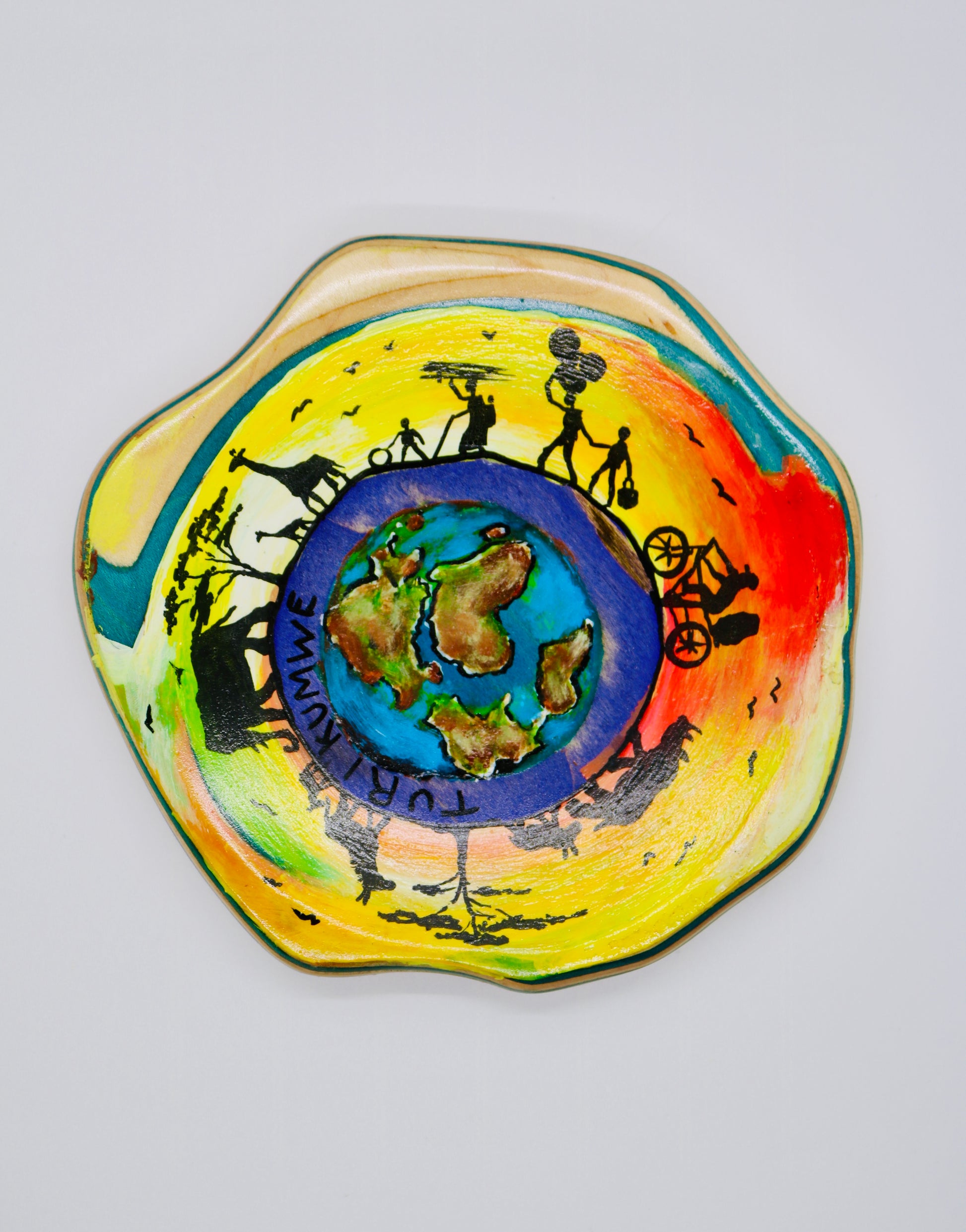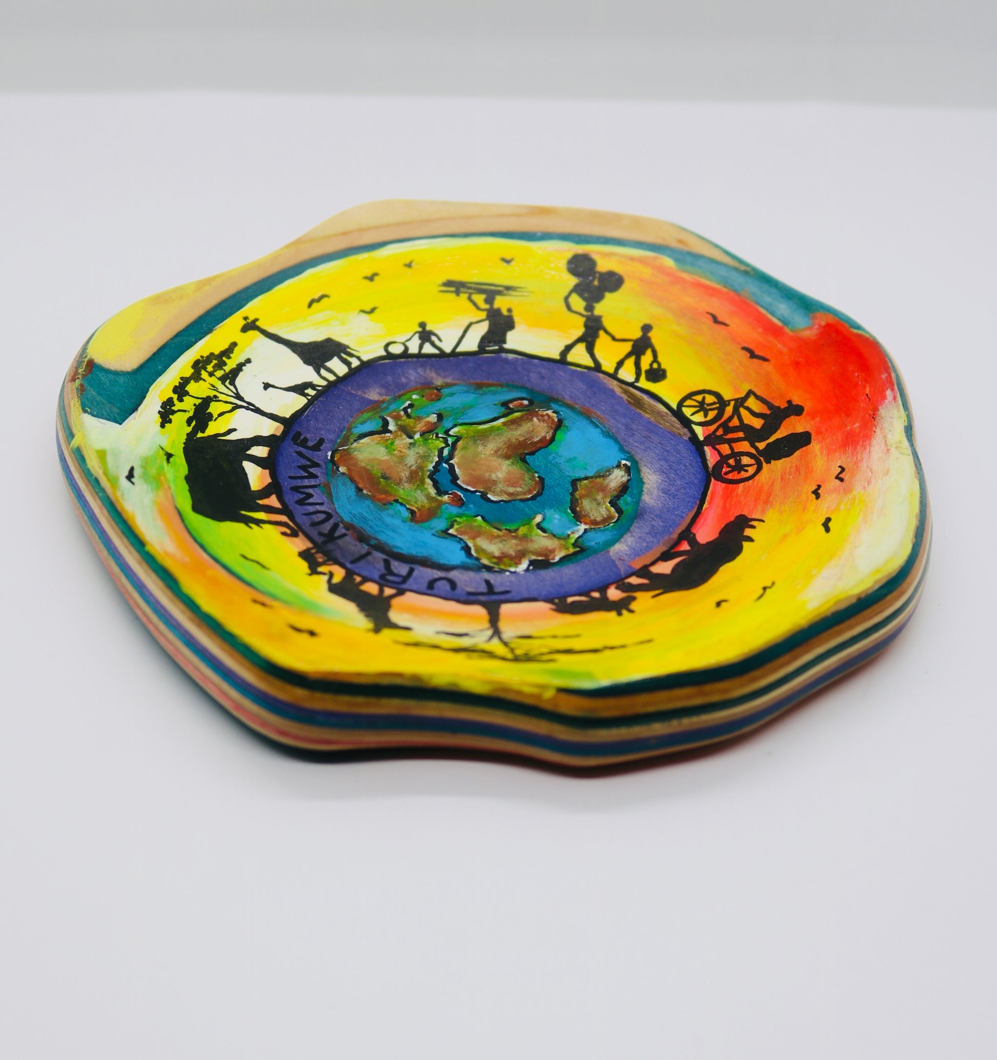 Catchall hand made from recycled skateboards by Barousse Works then hand painted on by Gakwaya Gisa. ~7.5” x 1” ✨