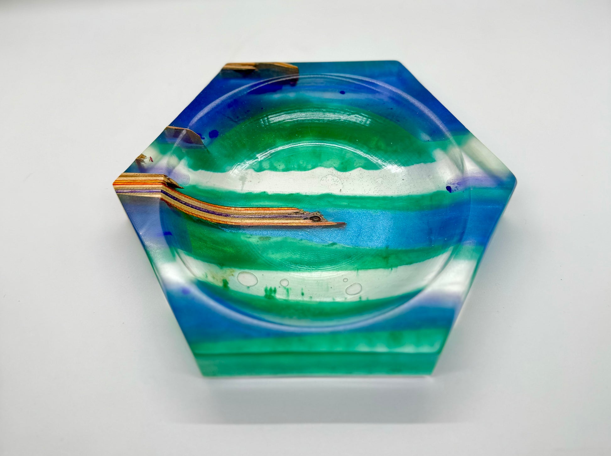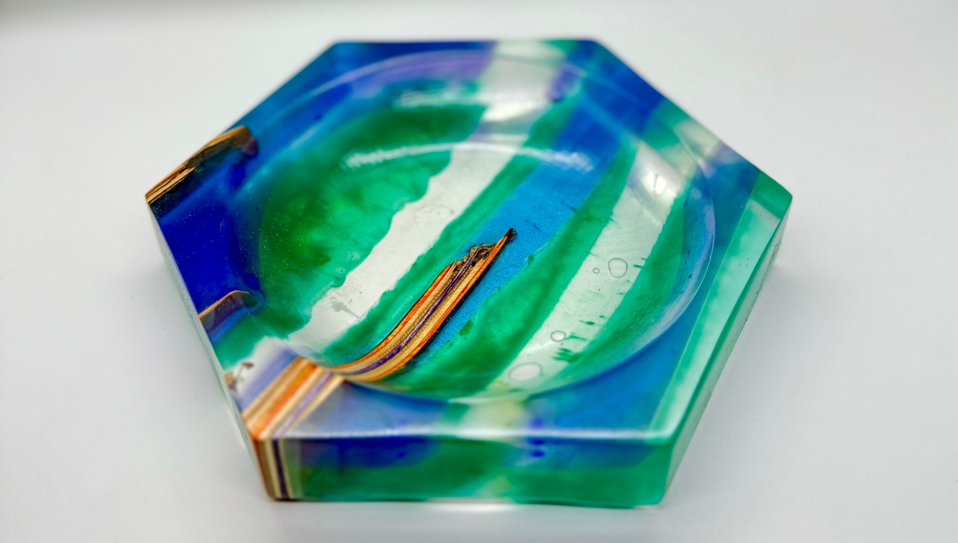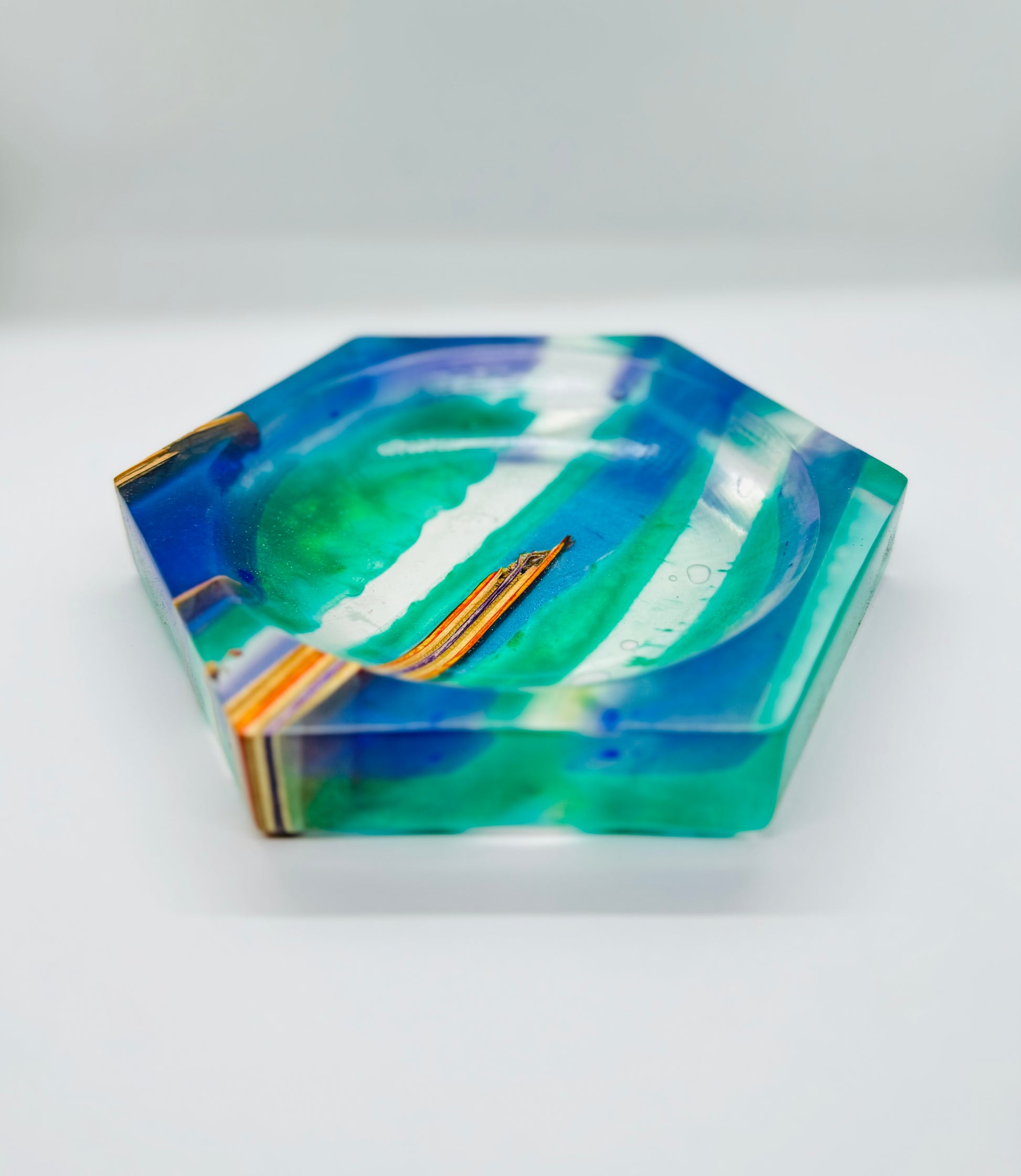 Catch all tray made from recycled skateboards and epoxy ~7” x 1”