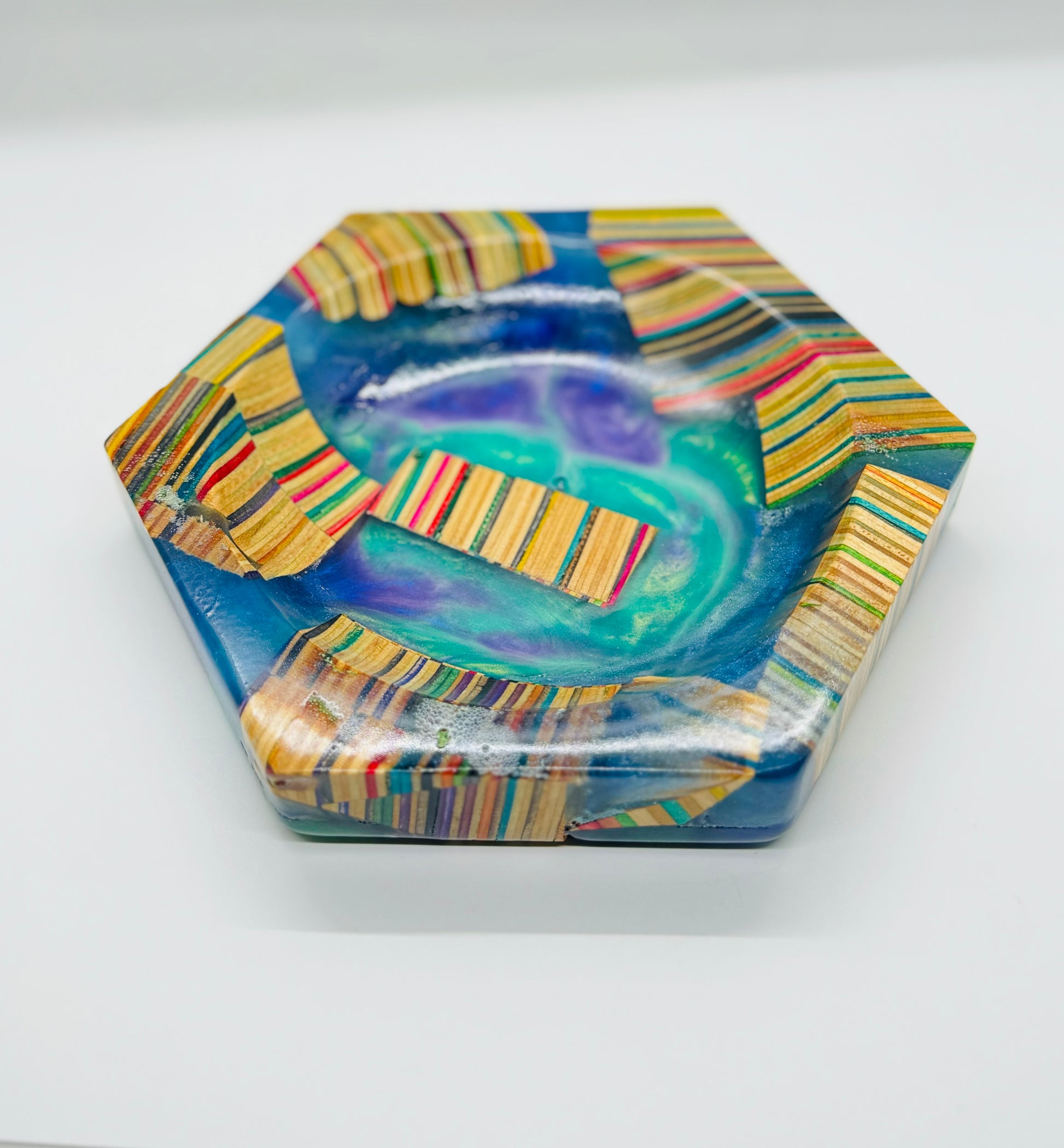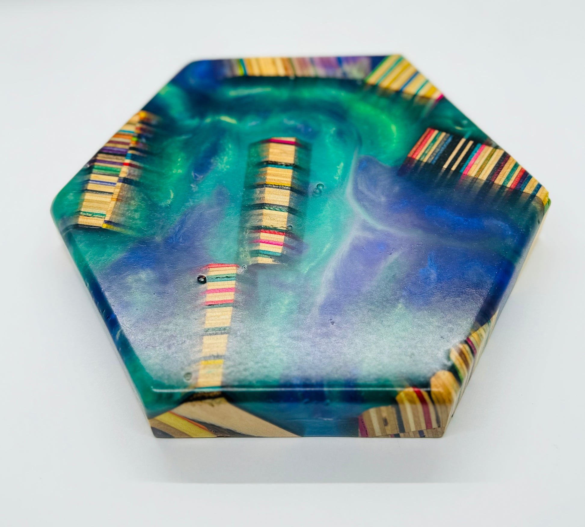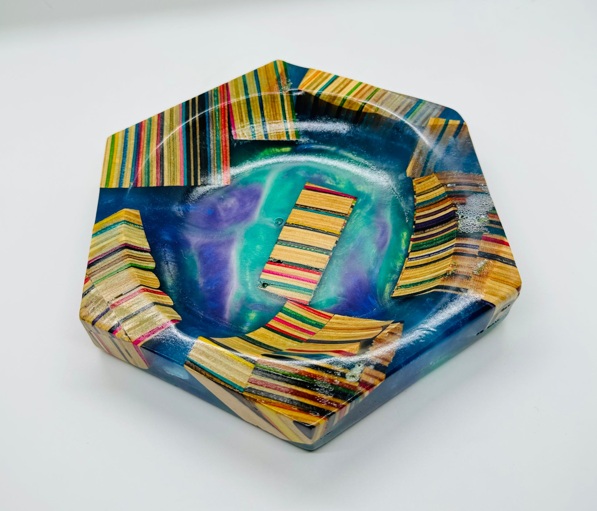 Catch all tray made from recycled skateboards and epoxy ~7” x 1”