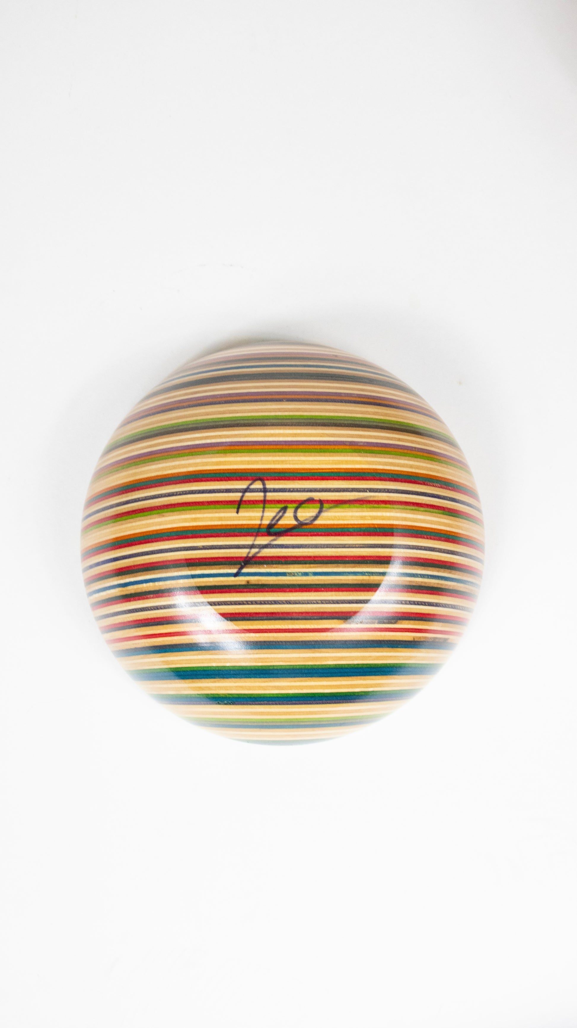 Bowl handmade from 17 recycled skateboards. This bowl was made using skateboards from all over the US. ~6.5” x 3”