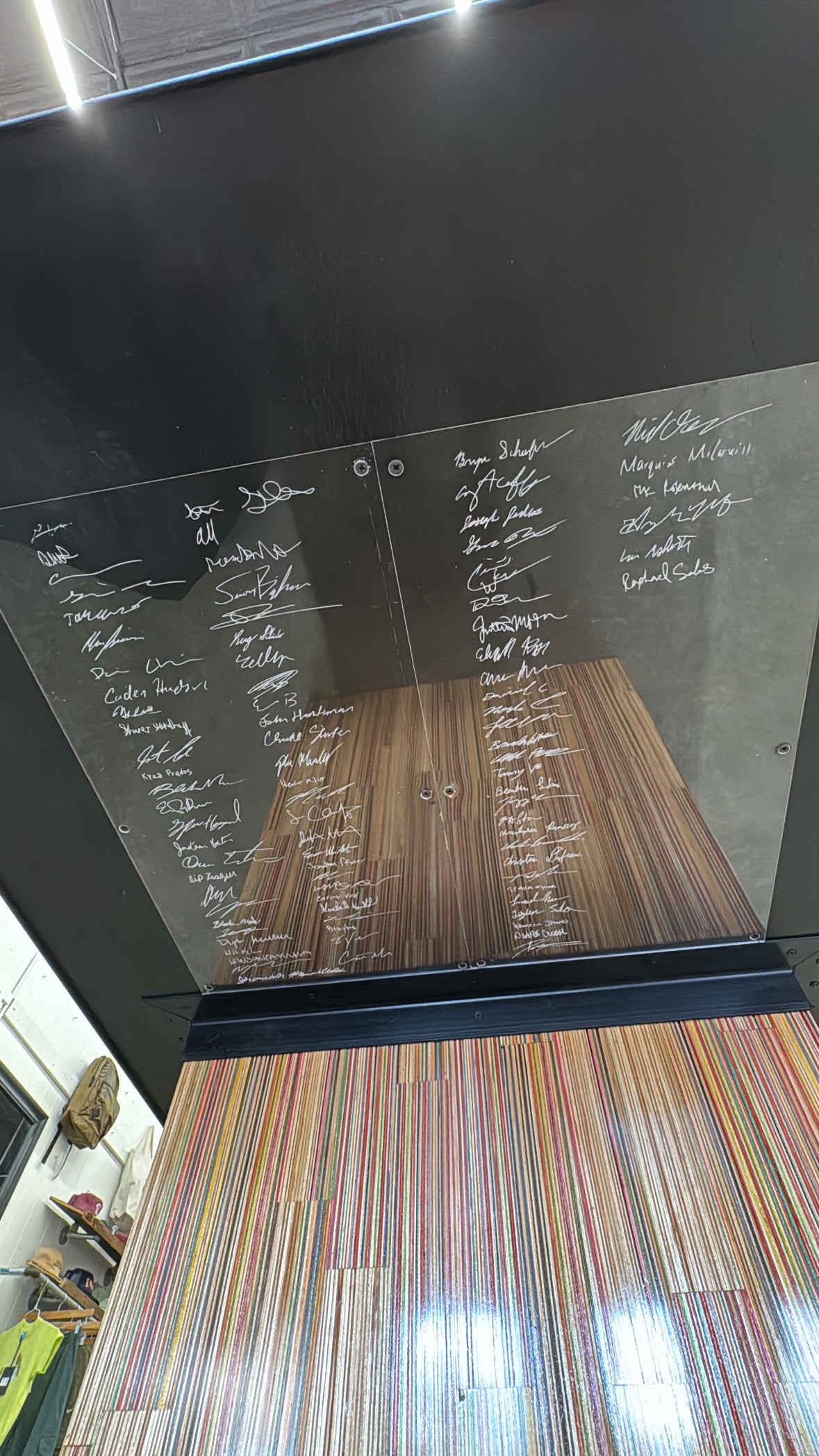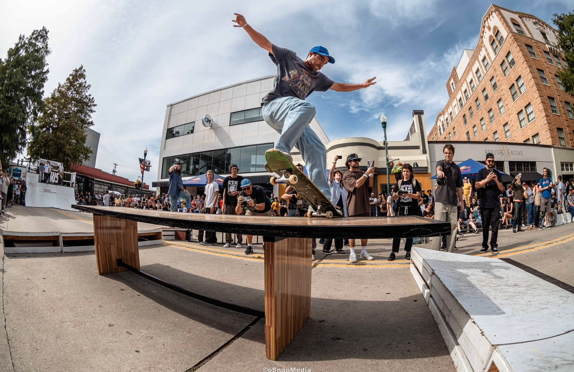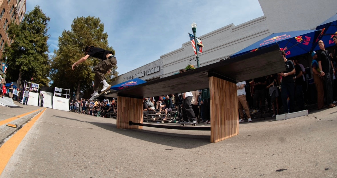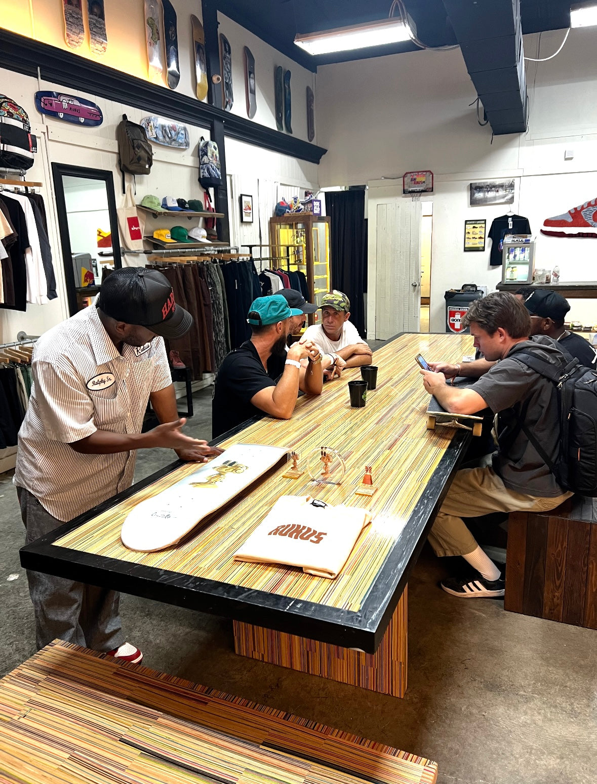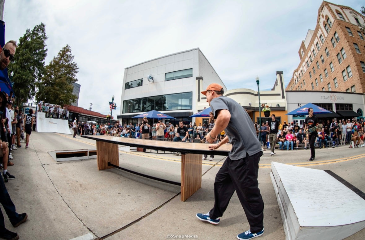 At the time of its construction this was the World’s largest dining table made from recycled skateboards. This piece measures 13.5’ long by 3’ wide and is made from over 175 recycled skateboards and blackened steel. This piece of art has one of the most special stories of any piece I have ever created. This was the center obstacle at the first ever Barousse Works Invitational which is a skate contest where we invite the Skateshops and their teams who I work with to get my recycled skateboards to come skate in the middle of my city. From local businesses and my local government to RedBull and Vans, we all worked together to shut down two city blocks in Lafayette, La to bring 21 Skateshops and over 100 professional and amateur skaters to skateboard on this very piece. At the end of the event we took every person’s signature and laser engraved them on acrylic panels and mounted them to the bottom to make this a truly one of a kind piece of art. Some of the skaters who came with our partner Skateshops actually contributed boards that were used to make this piece and then those very same skaters grinded this table. With over 100 skater’s grinding this table without it breaking, it’s safe to say it is very well built. I put my heart and soul into this piece and we displayed it in a way that made the 11 year old skateboarder in me shine. Thank you! ✨